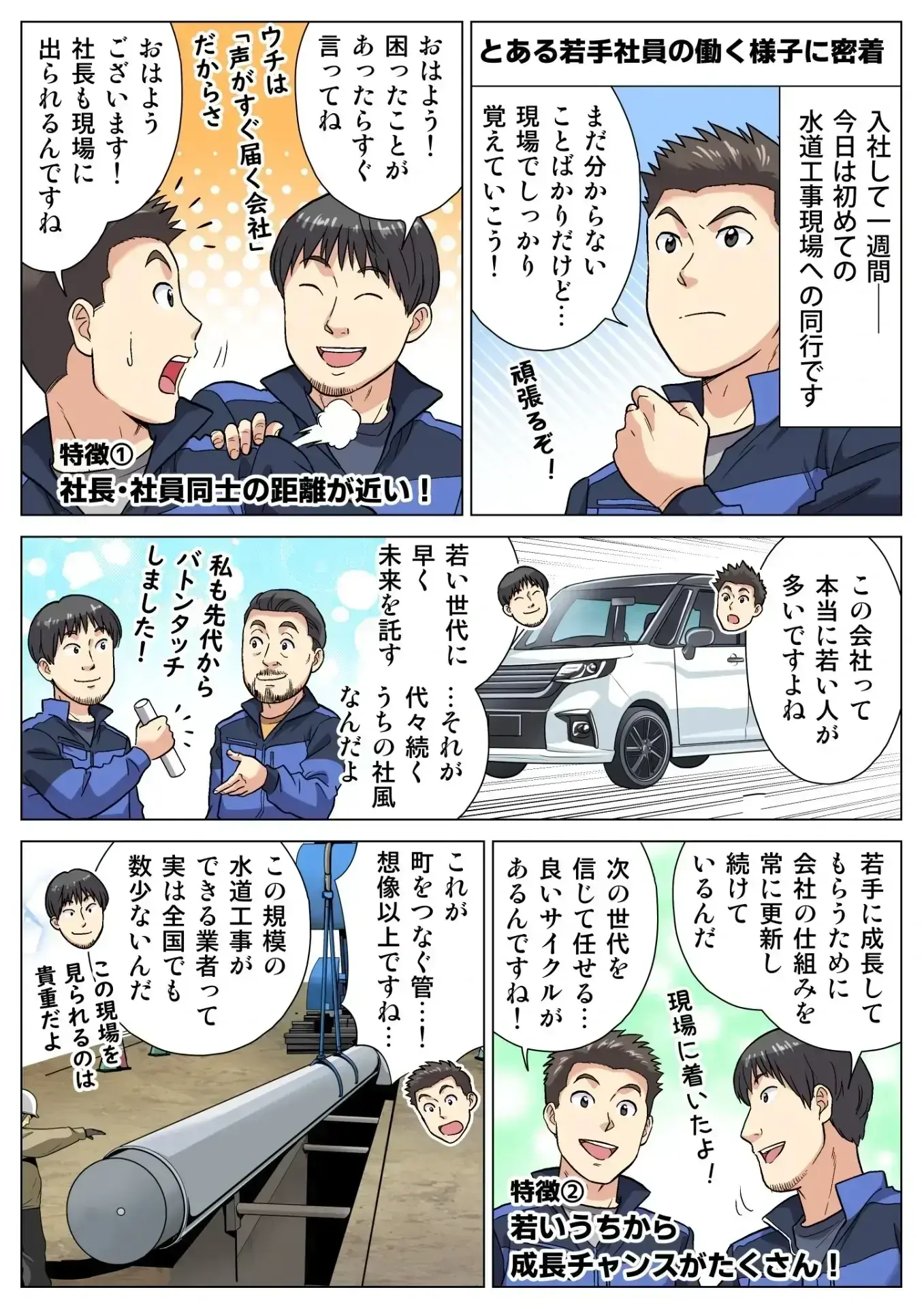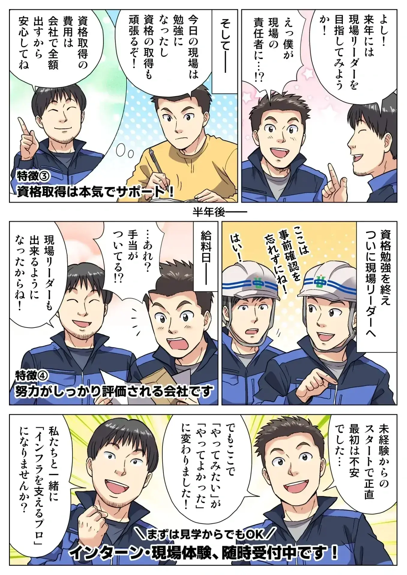 現場作業に必要な道具や作業着は会社で支給。入社時の負担を減らし、安心して仕事を始められる体制を整えています。